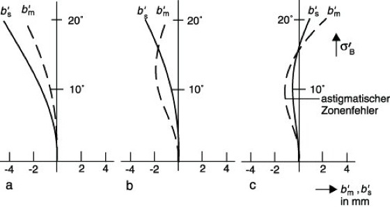 st durch die astigmatische Differenz bestimmt wird und ebenso wie die Halbachsen selbst in der Näherung der Bildfehlertheorie 3. Ordnung hBy2 bzw. hBtan2σ ![]()