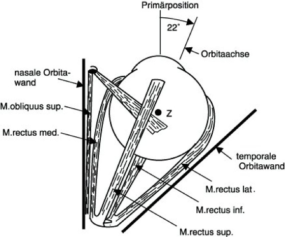 Augenmuskel, Muskel, der der Augenbewegung dient. Jedes Auge verfügt über 6 äußere A. (Abb.).