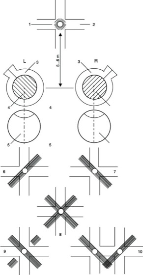 6 Seheindruck links bei völliger Unterdrückung des rechten Auges,
