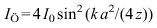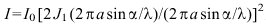 3) Beugung an einer kreisföimig begrenzten Blende. Aus der Formel für die Fraunhofersche Beugung (Beugungstheorie) ergibt sich bei senkrechtem Lichteinfall die Intensität im Fernfeld (G. B. Airy 1835) zu![]()