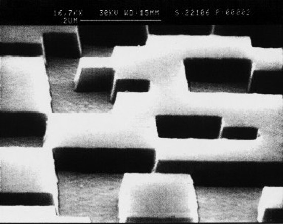 Wesentlich zu fordern sind für diese Elemente eine hohe Beugungseffektivität über ihren gesamten Querschnitt, die Vermeidung von Störungen des Lichtes der benutzten Beugungsordnung durch ebenfalls auftretende andere Beugungsordnungen oder Störlicht einschließlich der nullten Ordnung und die Erfüllung der Korrektionsbedingungen in einem eventuellen optischen System. Von der Beugungseffektivität her sind Phasenstrukturen, beispielsweise Phasengitter, zu bevorzugen. Einfachstes DOE ist die Fresnelsche Zonenplatte, die dem Geradeaushologramm eines Punktes entspricht und zweckmäßigerweise ebenfalls durch ein geblaztes Phasenrelief realisiert wird (Abb. 2). Bei synthetischer Herstellung können die beugenden Strukturen außerordentlich flexibel gestaltet werden. Damit können die DOE verwendet werden als Vergleichsnormale zu Prüfzwecken (Hologramminterferometrie), zur Beseitigung von Abbildungsfehlern bei bevorzugt spektral begrenzter Abbildung, zur Realisierung gewünschter optischer Transformationen von Wellenfeldern (Filterung), zur Beleuchtung vorgegebener Figuren im Raume (Abb. 1), zur Lichtablenkung, Bildvervielfachung, Sicherheitskodierung (Banknoten, Kreditkarten), zur Synthetisierung von polarisationsoptischen Eigenschaften mittels Strukturierung im Sub-Wellenlängenbereich und zu anderen Anwendungen. Für die gemittelte Beugungseffektivität eines DOE bestehen in der Struktur begründete Grenzen (F. Wyrowski, 1990). Die starke Dispersion der DOE ist u.U. ein Nachteil, sie ist jedoch von Vorteil bei der Formung von Femtosekundenimpulsen. Die hohe Flexibilität für monochromatische Anwendungen ist der charakteristische Vorteil der DOE.