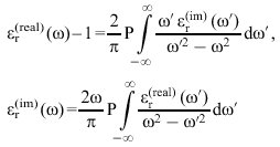 Dispersionsrelation, in der Optik ein mathematischer Zusammenhang zwischen dem Real- und dem Imaginärteil der komplexen relativen Dielektrizitätskonstanten ![]()