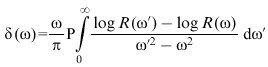 (Kramers-Kronig-Relationen). Dabei bedeutet das Symbol P den Hauptwert des Integrals. D. erweisen sich als nützlich bei der Bestimmung der optischen Konstanten n und Κ' stark absorbierender Materialien, da in solchen Fällen eine direkte Messung von Κ' kaum möglich ist. Praktisch geht man so vor, daß man ![]()