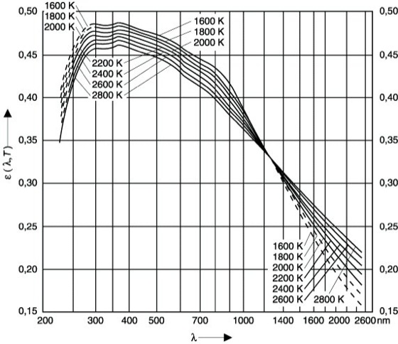 Emissionsgrad: Der Emissionsgrad von Wolfram.