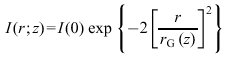 Gaußsche Bündel, inhomogene Strahlenbündel, deren zur Ausbreitungsrichtung z orthogonaler Intensitätsverlauf
