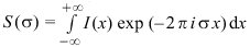 Im I. ist jeder Lichtwellenzahl σ (reziproke Wellenlänge) bei gleichförmiger Veränderung des optischen Gangunterschiedes x mit der Geschwindigkeit dx/dt die Modulationsfrequenz f=σ dx/dt zugeordnet. Monochromatisches Licht, z.B. eines Lasers, liefert unter idealen Bedingungen ein Interferogramm der Gestalt I(x)=I0(1+cos(2πσx)), wobei I die Intensität des Lichtes bezeichnet. Das Interferogramm breitbandiger Strahlung ist die Summe der Interferogramme aller in der Strahlung enthaltenen monochromatischen Anteile. Aufgenommen wird das Interferogramm als Funktion des optischen Gangunterschiedes. Aus ihm erhält man durch Fourier-Transformation das Frequenzspektrum S(σ) der Strahlung: ![]()