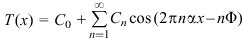 Von einem allgemeineren Standpunkte aus gesehen werden durch die nichtlineare Verzerrung – im Extremfalle handelt es sich um eine Umwandlung in transparente und opake Bereiche – höhere Harmonische bezüglich der Grundperiode des Streifensystems erzeugt. Aus der räumlichen Intensitätsverteilung I(x)=I0[1+Vcos(2παx-Φ)] mit V als Sichtbarkeit des Interferenzbildes und α als dem Reziproken der Streifenperiode wird dann eine Transparenzverteilung ![]()
