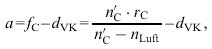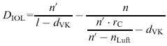 (a' Bildweite der i. L., l Augenlänge, dVK Dicke der Vorderkammer, a Objektweite der i. L.),![]()