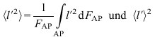 entspricht (FAP Fläche der Austrittspupille AP). Sie bestimmt die Definitionshelligkeit und läßt sich, von Vorfaktoren abgesehen, als Quadratsumme der Nijboer-Zernike-Koeffizienten darstellen. Für beugungsbegrenzte Systeme muß