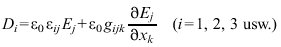 (ε0 Dielektrizitätskonstante des Vakuums), wobei über doppelt auftretende Indizes zu summieren ist. (Derartige Ansätze wurden zuerst 1882 von W. Gibbs gemacht.) Der zweite Summand in (1) beschreibt die räumliche Dispersion. Die Berechnung des Gyrationstensors 3. Stufe gijk aus molekülphysikalischen Vorstellungen heraus gelang M. Born und G. W. Oseen 1915 im Rahmen der Gitteroptik. Bei fehlender Absorption gilt gijk= -gjik mit reellen Tensorkomponenten.