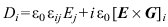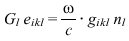 der Gyrationsoder Rotationsvektor G mit den Komponenten Gi definiert werden. Dabei bezeichnen ω die Kreisfrequenz, c die Lichtgeschwindigkeit und eikl den vollständigen antisymmetrischen Einheitstensor 3. Stufe, der folgendermaßen definiert ist: Es gilt eikl = 1, wenn ikl eine gerade, eikl = -1, wenn ikl eine ungerade Permutation von 1 2 3 ist, und eikl=0, wenn zwei und mehr Indizes übereinstimmen. Dann wird aus (1)![]()