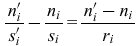 mit si und s'i bzw. ni und n'i als paraxiale Schnittweiten bzw. Brechzahlen im Objekt- und Bildraum. Die Schnittweiten s'i und si+1 zweier im Abstand d'i benachbarter Flächen i und i+1 sind durch die Beziehung s'i-d'i=si+1 miteinander verknüpft. Für ein Κ-flächiges optisches System sind die paraxiale Brennweite (Brennebene)