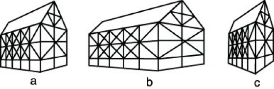 Perspektive 4: Natürlicher (a), tiefenverkürzter (b) und tiefenverlängerter (c) perspektivischer Eindruck.