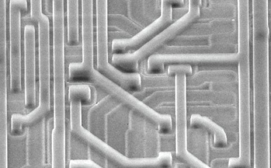 Die Asphaltschicht wurde inzwischen durch voll synthetisierte Photoresistschichten ersetzt. Die P. fand erste Anwendungen in der Drucktechnik und bei der Herstellung von Leiterplatten. Mit der Erfindung des Transistors und der Planartechnologie zur Herstellung mikroelektronischer Bauelemente und Schaltkreise wurde sie zu einem der wichtigsten Produktionsverfahren des ausgehenden 20. und beginnenden 21. Jahrhunderts. Ein Beispiel zeigt Abb. 3. Die große Bedeutung der P. ist einerseits in ihrer hohen Produktivität gegenüber schreibenden Verfahren (Elektronen- und Ionenstrahllithographie), den relativ geringen Kosten und der einfachen Handhabung (z.B. im Vergleich zur Röntgenlithographie) begründet. Andererseits erkannte die optische Industrie sehr schnell die Bedeutung und Chancen des durch die Mikroelektronik und Informationstechnik erschlossenen, sich rasch entwickelnden neuen Marktes. Vom Trend zur Miniaturisierung getrieben, konnte sie rechtzeitig immer leistungsfähigere photolithographische Geräte zur Verfügung stellen. Die entwickelten Verfahren finden immer neue Anwendungsgebiete wie beispielsweise Mikromechanik und integrierte Optik.