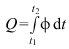 2) Lichtmenge oder Lichtarbeit (Q). Sie ist definiert als das Integral des Lichtstromes φ über die Zeit t![]()