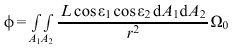 (ε1, ε2 Winkel zwischen den jeweiligen Flächennormalen und der Raumwinkelachse, Raumwinkel Ω0=1 sr).