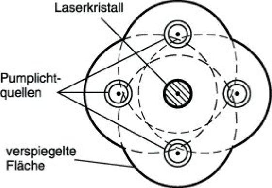 Pumplichtanordnung: Vierfach-elliptische Pumplichtanordnung.