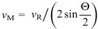 wobei p die Rasterperiode bezeichnet. Verschiebt man eines der Raster um eine Periode, so verschiebt sich das Moiré-Bild um S. Wenn sich das eine Raster mit der Geschwindigkeit vR bewegt, verschiebt sich daher das Moiré-Muster mit der Geschwindigkeit ![]()