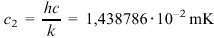 h=6,626176 10-34Js (Plancksches Wirkungsquantum), c=2,99792458·108ms-1 (Lichtgeschwindigkeit im Vakuum), k=1,380662·10-23 J/K (Boltzmann-Konstante) und Ω0=1 sr (Einheitsraumwinkel).