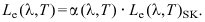 Ist einer der Strahler der schwarze Strahler (für den definitionsgemäß α(λ,T)=1 gilt), so liefert das Kirchhoffsche Gesetz den folgenden Zusammenhang zwischen den spektralen Strahldichten eines Temperaturstrahlers und des schwarzen Strahlers![]()
