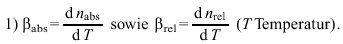 Diese Temperaturkoeffizienten der absoluten bzw. relativen Brechzahl geben die mittlere Änderung der Brechzahl für eine bestimmte Wellenlänge bei Temperaturerhöhung um 1 K an.