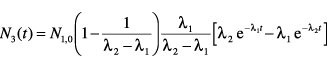 3 mit i.a. unterschiedlichen Halbwertszeiten wird ständig durch Zerfall der Muttersubstanz 1 neue Tochtersubstanz 2 erzeugt. Ist zu Beginn einer Meßreihe nur die Muttersubstanz in der Menge N1,0 vorhanden, so gilt für die Zeitabhängigkeit ihrer Substanzmenge N1: