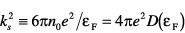 , wobei 1/ks die Abschirmlänge nach Thomas-Fermi darstellt. εF ist die Fermi-Energie, e die Elektronenladung, n0 die Dichte. Man benutzt diese Größe u.a. zur Berechnung des Coulomb-Potentials von Fremdatomen in Metallegierungen, welche die Leitungselektronen streuen und dadurch den Widerstand verändern. Hierbei tritt durch die Abschirmung ein Exponentialfaktor exp( – ksr) im Potential auf, der die Reichweite des Potentials verringert.