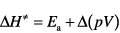 Aktivierungsenthalpie, Differenz zwischen der Enthalpie im Übergangszustand und der Summe der Enthalpien der Reaktanten im Grundzustand. Der Zusammenhang zwischen der Aktivierungsenthalpie