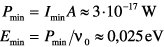 3. Die Sinnesleistungen von Lebewesen: Zunächst ist hier interessant, daß Spitzenleistungen der Sinnesorgane bei vielen Lebewesen die physikalischen Grenzen weitgehend ausschöpfen. Die Hörschwelle des Menschen [3], [4], [5, S. 1049] von Imin ≈ 4 · 10 - 17 W/cm2 bei der Eigenfrequenz des Gehörgangs ν0 ≈ 3 kHz entspricht für eine Periode und dem Trommelfellquerschnitt von A ≈ 0,3 cm2 einer Schwellenleistung und -energie von