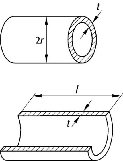 Zwei Bereiche alltäglichen Erlebens, in denen der aufmerksame Blick viel Physik entdecken kann, sind die der Haushaltsphänomene (einschließlich Haushaltstechnik), etwa Lichtquellen und der Küchenphänomene (einschließlich Nahrungsmittel). Warum beispielsweise platzen Würstchen beim Erhitzen immer in Längsrichtung? Weil die Wandspannung in einem unter den Druck p gesetzten Rohr (Radius r, Länge l, Wanddicke t) in axialer Richtung rp/2t, in tangentialer Richtung aber doppelt so groß ist; dies folgt, wenn man die durch den Druck auf einen radiale bzw. axiale Querschnittsfläche erzeugte Kraft (πr2p bzw. 2rlp) durch die Wandflächen in diesen Querschnittsebenen (2πrt bzw. 2lt) teilt ( Abb. 6 ).