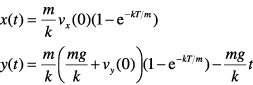 Zwei weitere Erlebensbereiche mit viel Bezug zur Physik sind Spielzeug und Sport. Das Mariottesche Stoßpendel (vulgo "Klick-Klack-Maschine") beispielsweise dient regelmäßig zur Illustration der Energie- und Impulserhaltung; weniger bekannt ist, daß sich durch die unvermeidlichen Dissipationsverluste mit der Zeit eine Situation einstellt, in der alle Kugeln synchron schwingen und keine Stöße mehr stattfinden. Der Grund hierfür läßt sich wie folgt einsehen: Die zeitliche Entwicklung eines Systems unter Stößen läßt sich durch eine lineare Abbildung beschreiben, für die es, analog zu Schwingungen, Normalmoden gibt; sind die Stöße dissipativ, so hält die Mode mit der kleinsten Dämpfung am längsten an, und dies ist für identische Teilchen gerade die synchrone Bewegung, weil es dabei keine Stöße und damit keine Dissipation durch solche gibt (die Reibung an der Luft sowie in der Aufhängung bleibt natürlich). Ein anderes Beispiel im Zwischenbereich zwischen Spiel und Sport ist der Magnus-Effekt, der sowohl für die Frisbee-Scheibe wie für die "geschnittenen" Bälle beim Fußball, Golf und Tennis/Tischtennis sehr wichtig ist. Dasselbe gilt für den Luftwiderstand; Abb. 7 zeigt beispielsweise die Flugbahn eines Golfballes unter dem Einfluß der Schwerkraft mg und Stokes'scher Reibung k ![]()