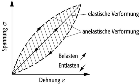 Anelastizität: Hystereseschleife im Spannungs-Dehnungs-Diagramm.