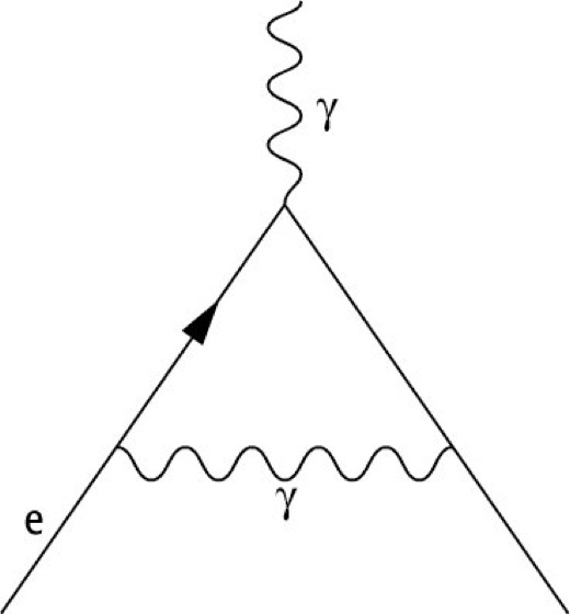 anomales magnetisches Moment 1: Schwinger-Diagramm, der führende Beitrag zum anomalen magnetischen Moment des Elektrons.