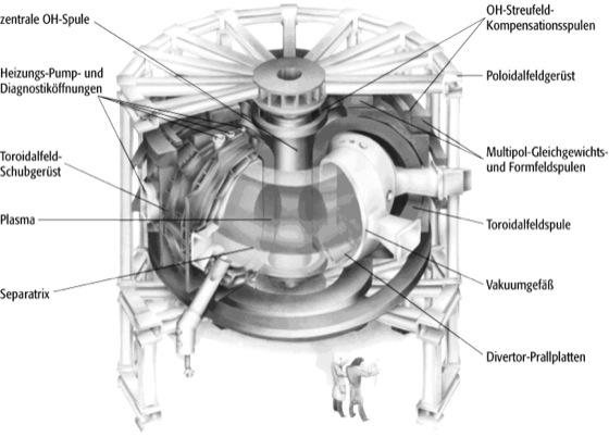ASDEX-Upgrade: Gesamtansicht des Tokamakexperiments.
