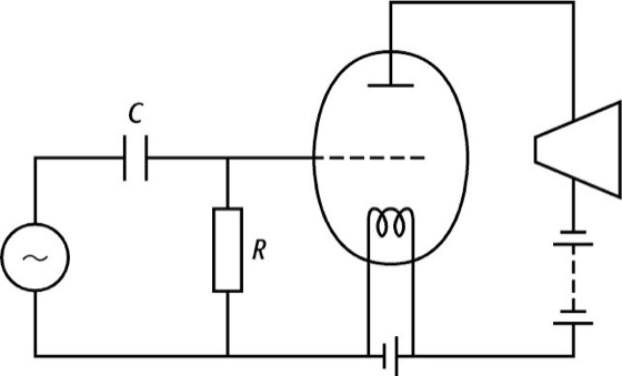 2) Audionschaltung, 1912 von L. de Forest entwickelte Schaltung zur gleichzeitigen Gleichrichtung (Demodulation) und Hochfrequenzverstärkung mittels einer Audionröhre. Die Audionschaltung ist eine der ältesten Empfängerschaltungen der Rundfunktechnik. Durch Rückkopplung wird die Verstärkung und damit die Empfindlichkeit des Empfängers erhöht.