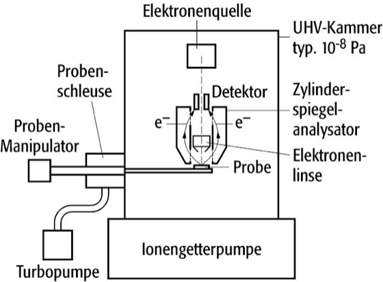 Auger-Elektronenspektroskopie 1: Schema des experimentellen Aufbaus.