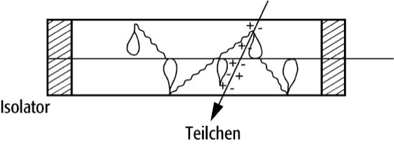Auslösezähler: Schema der transversalen Lawinenausbreitung in einem Auslösezählrohr.