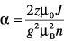 die Austauschfeld-Konstante, die proportional zum AustauschintegralJ ist (z: Anzahl der nächsten Nachbarn, n: Anzahl der Magnetmomente pro Volumen, μB: Bohrsches Magneton, g: g-Faktor).