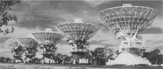 Australia Telescope, Australisches Radioteleskop, ein aus acht elektronisch zusammengeschalteten Radioteleskopen bestehendes Radiointerferometer im australischen Neusüdwales, welches damit die größte radioastronomische Anlage auf der Südhalbkugel darstellt. In Culgoora befinden sich sechs Einzelteleskope und in Coonabarabran ein weiteres mit jeweils 22m Durchmesser. Ein 64-m-Spiegel im 320km entfernten Parkes-Radioastronomischen Observatorium dient als achtes Teleskop. Dadurch erreicht das Australia Telescope eine Auflösungsvermögen von bis zu 0,02 ″ .