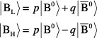 [n], Zustandsmischung im System der neutralen B-Mesonen. Die beiden Massen-Eigenzustände BL und BH sind – analog zum System der neutralen Kaonen – nicht identisch mit den zueinander CP-konjugierten Zuständen B0 und