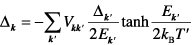 wobei Vkk' das Paarpotential beschreibt. Beruht dieses auf dem Elektron-Phonon-Mechanismus der Supraleitung, so kann es in erster Näherung als konstant Vkk' = – V in einer Kugelschale der energetischen Dicke (