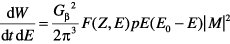 ab, wobei p und E Elektronimpuls bzw. -energie sind, F(Z,E) die Coulomb-Wechselwirkung berücksichtigt und die Übergangsmatrix M sich prinzipiell aus dem Drehimpuls L ergibt. Für erlaubte Übergänge (kein Bahndrehimpulsübertrag) ist die Form des Elektronspektrums nur durch den Phasenraum der Leptonen und Coulomb-Einflüsse bestimmt, d.h. M ist konstant. In diesem Falle weist die Größe