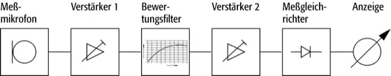 Bewertungsfilter: akustisches Meßgerät mit Bewertungsfilter (Blockschaltbild eines Schallpegelmessers).