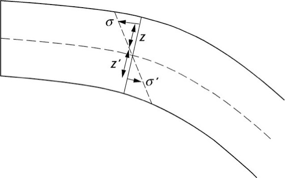 . Nach der Bernoullischen Theorie (Biegung) sind die Biegespannungen zum senkrechten Abstand von der neutralen Schicht proportional, es ergibt sich deshalb für jedes Paar von Spannungen und Abständen σ, z und