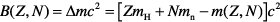wobei mH die Masse eines neutralen Wasserstoffatoms, mn die Masse des Neutrons, m(Z,N) die Masse des betreffenden Atoms und c die Lichtgeschwindigkeit ist.