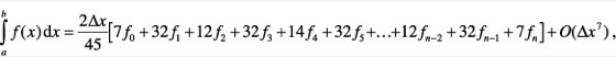 wobei fi = f(a + iΔx), Δx = (ba)/n und n durch vier teilbar ist. Die Bode-Regel ist genauer als die Trapezregel und die Simpson-Regel.