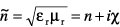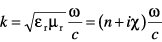 mit der Permeabilitätszahl μr, der Dielektrizitätszahl εr und der Vakuumlichtgeschwindigkeit c. Diese Gleichung kann als die Definition für die Brechzahln und die Dämpfungskonstante bzw. den Absorptionskoeffizientenχ verstanden werden. Diese Koeffizienten können zu einer komplexen verallgemeinerten Brechzahl