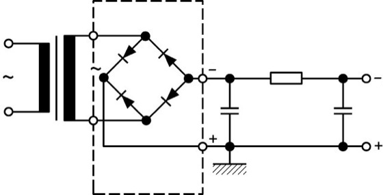 Brückengleichrichter: Schaltbild eines Brückengleichrichters.