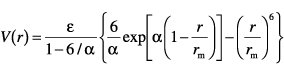 A, B, C und D sind Konstanten, mit welchen die Funktion an experimentelle Daten angepaßt wird. Manchmal wird der Dipol-Quadrupol Term weggelassen. Dann kann V(r) auch als Funktion von ε (Tiefe des Potentialtopfes), rm (Abstand bei minimaler Energie) und α (Krümmung der exponentiellen Abstoßung) ausgedrückt werden: