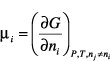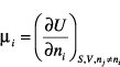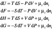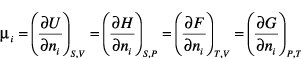 Den Differentialen der thermodynamischen Potentiale muß bei variabler Teilchenzahl der Term μidni hinzugefügt werden, durch den die Teilchenzahl als eine zusätzliche Variable der Potentiale berücksichtigt wird: